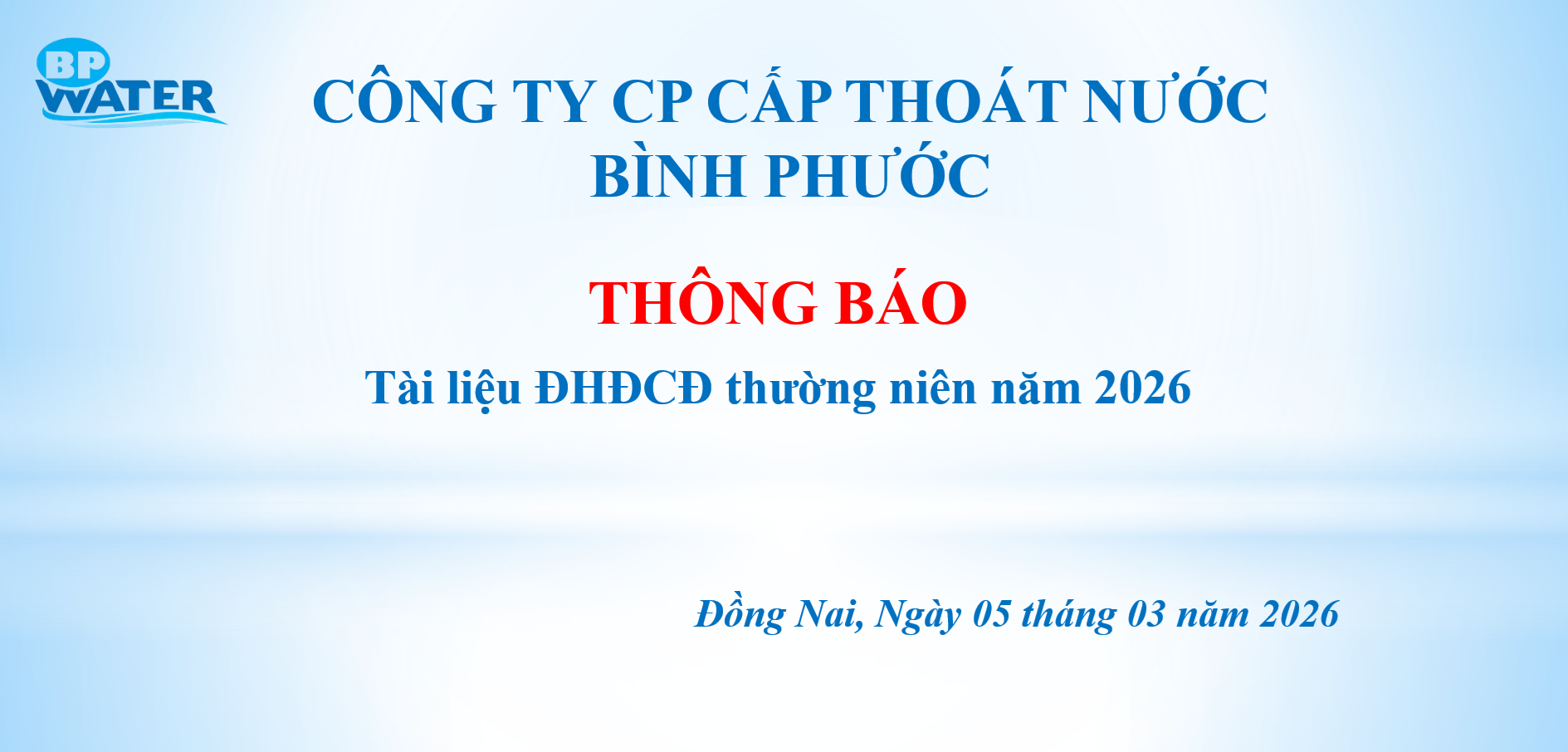 Thông Báo Về lịch tạm ngưng cung cấp nước phục vụ cho việc bảo dưỡng thiết bị đường ống cấp nước tại đường Quốc Lộ 14, phường Bình Phước